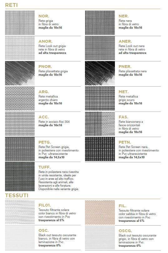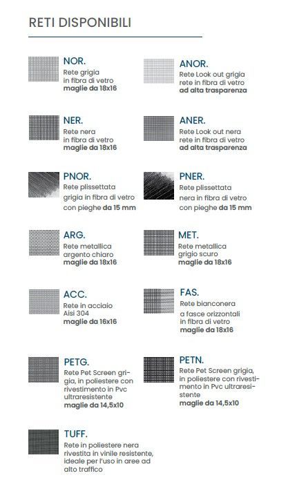 - Per ogni tipo di zanzariera richiedere foglio informativo con dimensioni massime consentite